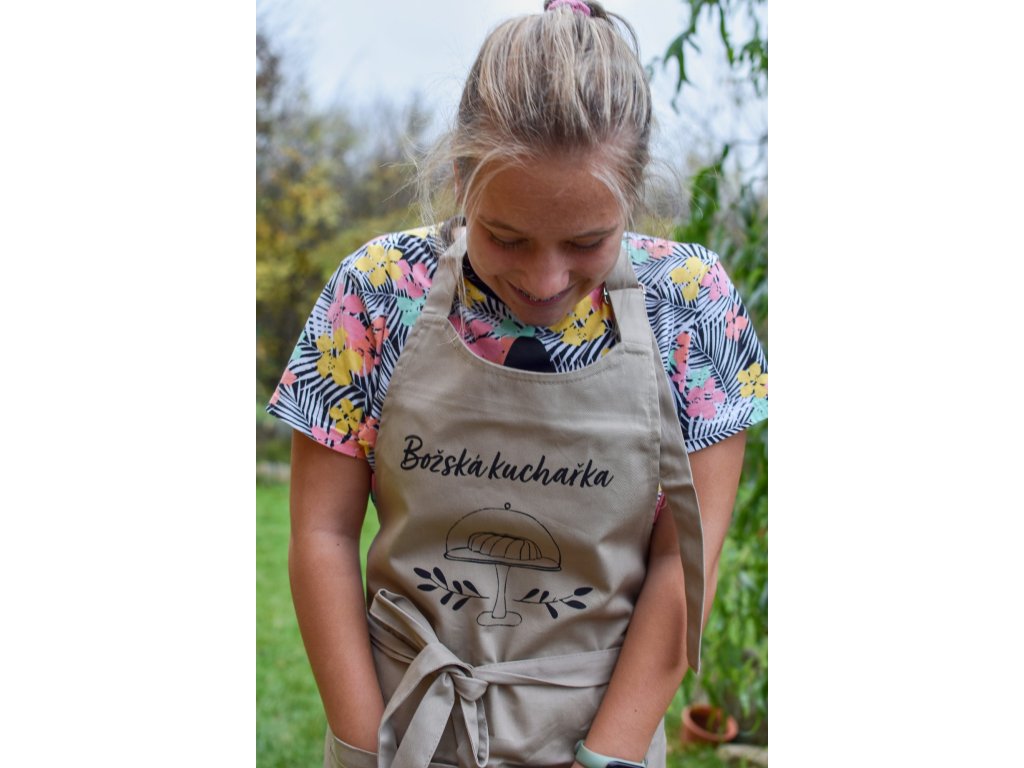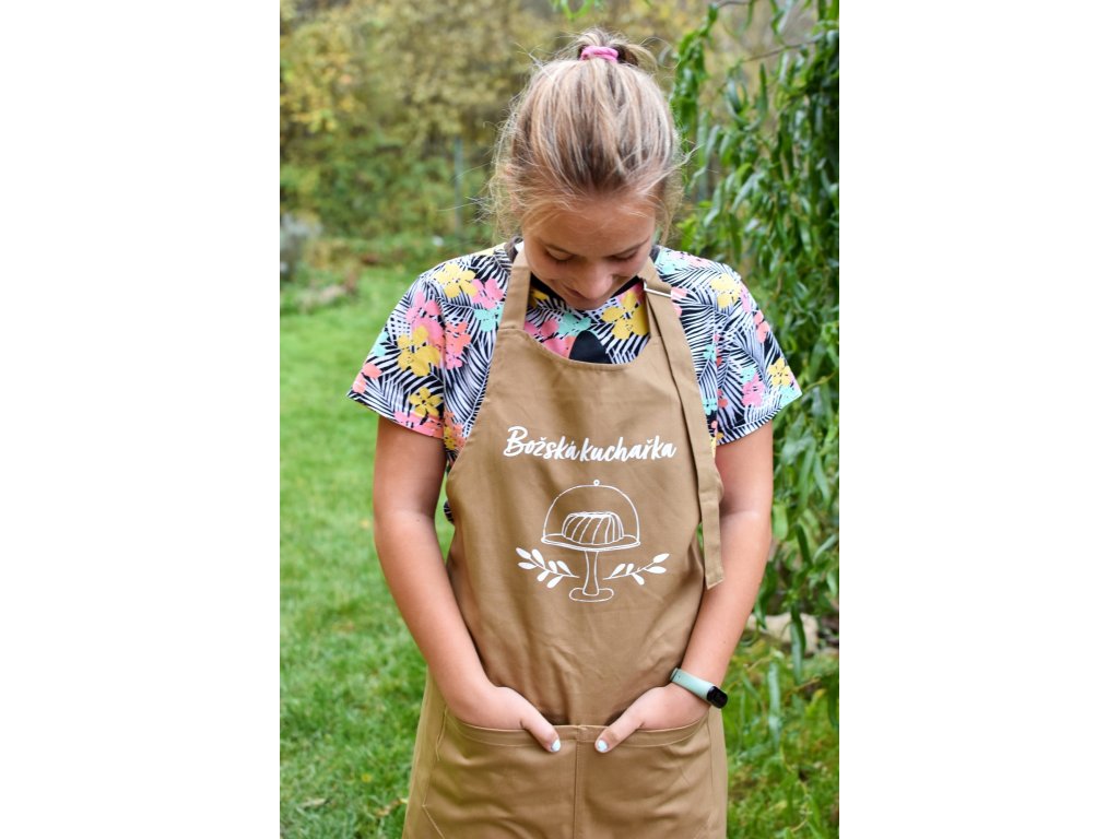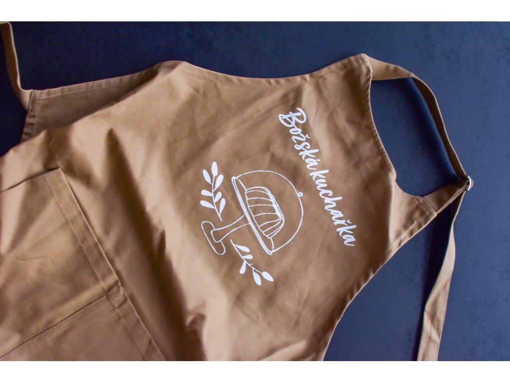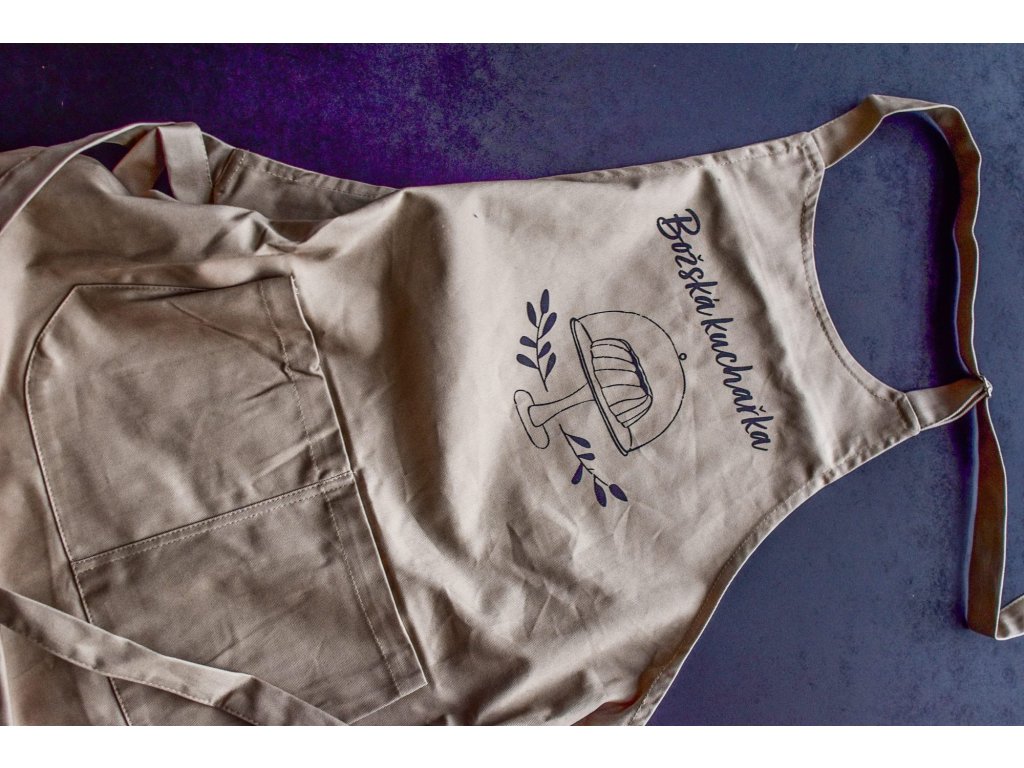 Velice kvalitní zástěra s dělenou kapsou a nastavitelným páskem kolem krku. Dostatečně dlouhé šňůry na zavázání. Pevná látka.